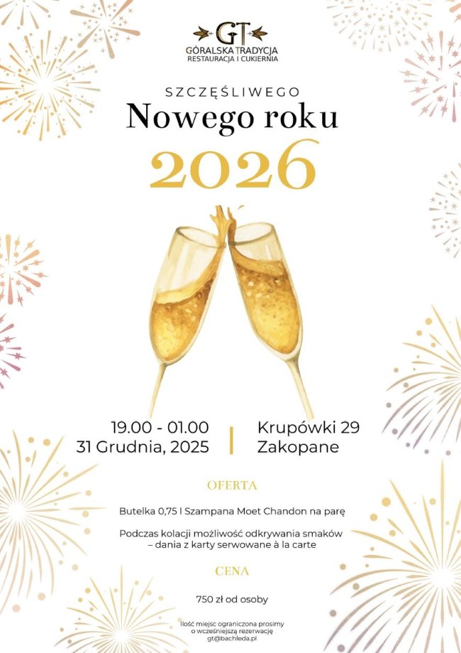 Przywitaj z nami Nowy Rok! Zapraszamy na wyjątkową i kameralną kolację Sylwestrową w Restauracji Góralska Tradycja.